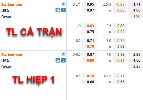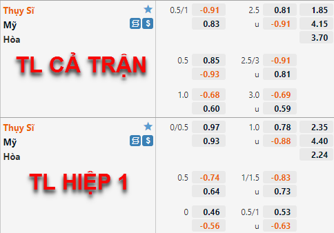 Tỷ lệ chấp chính của Thuỵ Sĩ vẫn đang được nhà cái châu Á duy trì ở mức 3/4 như thời điểm chung tôi cập nhật trước đây nhưng điểm ăn của cửa trên đã được điều chỉnh tăng tương đối nhiều so với trước đây. Bên phía tỷ lệ tài xỉu của trận đấu cũng có những diễn biến tương tự khi mốc 2 1/2 đang dần được đẩy lên làm tỷ lệ chính của trận đấu thay cho mốc 2 3/4 ở lần chúng tôi cập nhật trước.