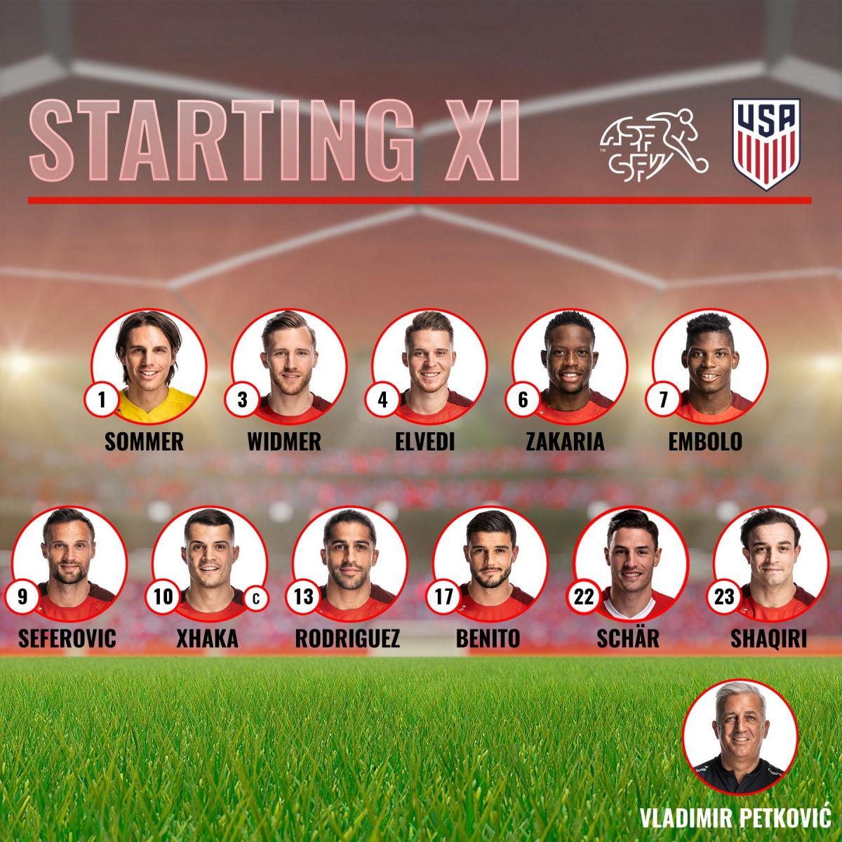Thụy Sĩ: Mvogo; Widmer, Akanji, Elvedi, Rodriguez; Zuber, Zakaria, Freuler, Shaqiri; Embolo, Seferovic
