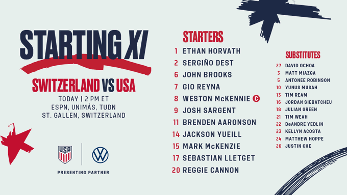 +Weston McKennie của Juventus và Daryl Dike (Barnsley) đều đã có mặt tại Thuỵ Sĩ và đều có cơ hội ra sân.