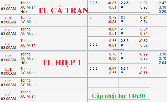 Liên tiếp để thua ở cả 2 vòng đấu gần đây, và lại là trước những đối thủ còn chơi tệ hơn mình, rõ ràng Torino đang khiến không ít người lo lắng khi phải tiếp đón 1 AC Milan với thực lực được đánh giá cao hơn. Tuy vậy những diễn biến trên sàn giao dịch châu Á, hy vọng vẫn dành cho Torino dù sát thời điểm bóng lăn kèo chấp của đội bóng này đã hạ từ -1/4 xuống hoà được thua khi điểm ăn mã này đang giữ ở mức khá thấp.