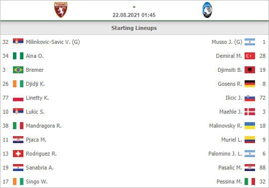 * Đội hình ra sân trận Torino vs Atalanta, 1h45 ngày 22/8: VĐQG Italia