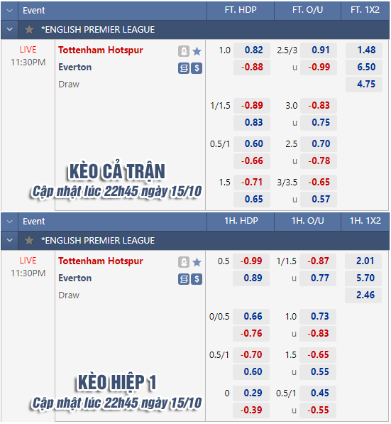 * Chốt kèo trận Tottenham vs Everton (23h30 ngày 15/10)