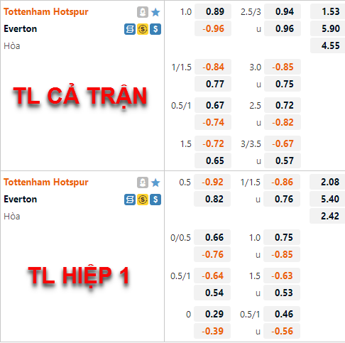AEGoal chốt kèo bóng đá trực tiếp trận Tottenham vs Everton diễn ra lúc 23h30 ngày 15/10 trong khuôn khổ giải Ngoại hạng Anh sau khi dựa trên tính toán, chuyển động về kèo châu Á và đội hình ra sân của 2 đội.
