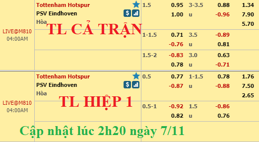 AEGoal.net chốt kèo trực tiếp trận Tottenham vs PSV Eindhoven sau khi dựa trên tính toán, chuyển động về kèo châu Á và đội hình ra sân của 2 đội.