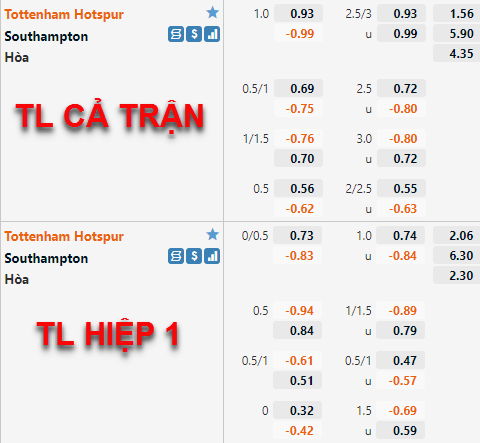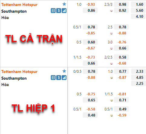 Tottenham vẫn được nhà cái châu Á duy trì ở mức chấp 1 hoà trên sàn giao dịch, thậm chí điểm ăn của cửa trên còn được điều chỉnh giảm so với trước đây. Tương tự mốc tài xỉu 2 3/4 vần là mốc chính của trận đấu, điểm ăn hiện tại đã được điều chỉnh giảm so với trước đây nhưng không nhiều.