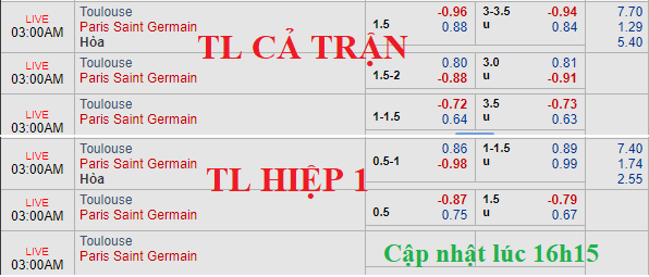 Chính bởi thế, PSG cũng không được đánh giá cao trong chuyến làm khách trước Toulouse khi mức chấp kèo chỉ là 1 1/2. Thậm chí, sau khi hai đội công bố đội hình ra sân, mức kèo chính đã giảm xuống chỉ còn 1 1/4. Về cơ bản PSG gần như đã chắc chắn vô địch, nên họ thậm chí cũng chẳng cần phải giành chiến thắng ở trận đấu này.