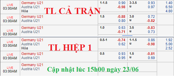 AEGoal.net chốt kèo trực tiếp trận U21 Áo vs U21 Đức diễn ra lúc 02h00 ngày 24/06 sau khi dựa trên tính toán, chuyển động về kèo châu Á và đội hình ra sân của 2 đội.