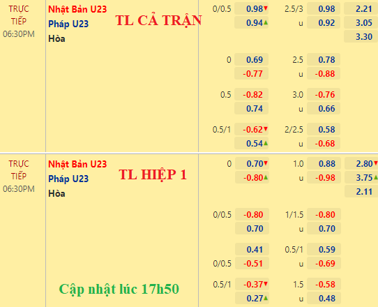 Điều đáng nói là trên sàn châu Á, U23 Nhật Bản mới là đội cửa trên. Họ vẫn duy trì kèo chấp 1/4 cùng điểm ăn cân bằng cho 2 cửa. Trong khi đó thì mức tài xỉu vẫn là 2 3/4 với lợi nhuận không chênh lệch là bao ở cửa tài và xỉu. U23 Pháp cần một chiến thắng nhưng hàng thủ của họ lại tỏ ra thiếu chắc chắn. Vì thế, cửa tài đáng tin cậy hơn.