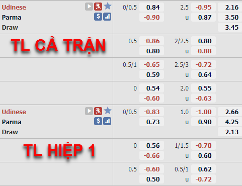 Thay đổi trên sàn giao dịch châu Á đem lại dấu hiệu tốt cho việc lựa chọn cửa dưới và xỉu trận này. Điều này hoàn toàn hợp lý, mặc dù Parma không có được phong độ tốt nhưng đội chủ nhà Udinese cũng không tốt hơn là mấy khi vẫn chưa có điểm nào ở 3 vòng đấu trước.