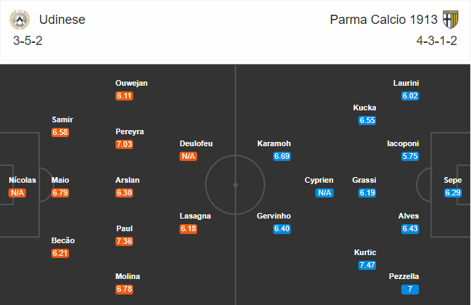 AEGoal.net chốt kèo bóng đá trực tiếp trận Udinese vs Parma diễn ra lúc 23h00 ngày 18/10 trong khuôn khổ giải VĐQG Italia sau khi dựa trên tính toán, chuyển động về kèo châu Á và đội hình ra sân của 2 đội.