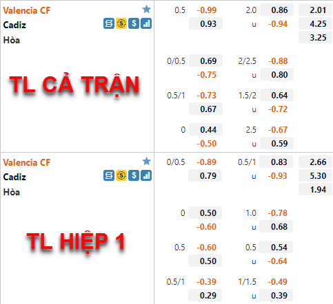 Tỷ lệ chấp chính của trận đấu vẫn đang được duy trì ở mức chấp 1/2 của Valencia như thời điểm chúng tôi cập nhật lần trước, điểm ăn của cửa trên đã được điều chỉnh tăng. Tương tự bên phía tỷ lệ tài xỉu cũng có xu hướng giảm điểm, mốc chính 2 1/4 trước đây đã được thay thế bằng mốc 2 hoà ở thời điểm hiện tại.