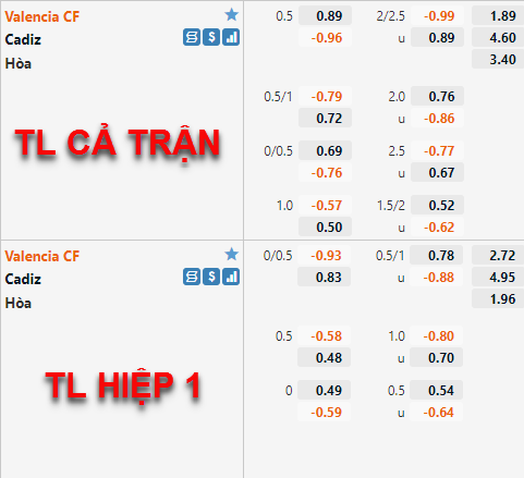 Valencia -1/2 cả trận