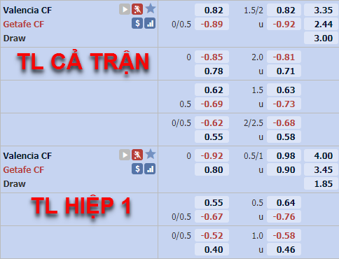 Getafe vẫn chấp đồng banh như thời điểm AEGoal update tỷ lệ sáng ngày 1/11 nhưng lợi nhuận cho cửa khách đá bỏ rất sâu. Trong khi ấy thì mức tài xỉu 1 3/4 vẫn được giữ nguyên và điểm ăn cho cửa tài có tăng nhẹ.