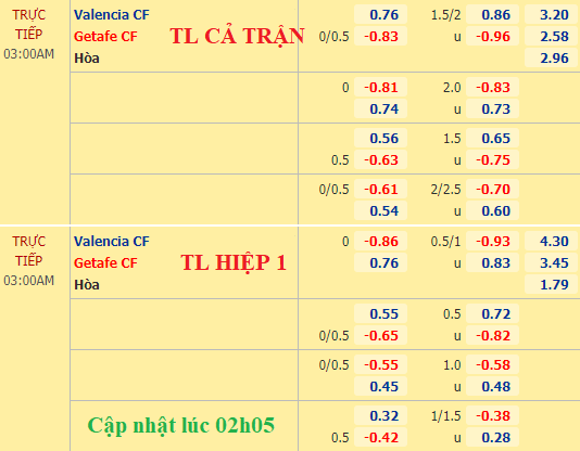 Chốt kèo trực tiếp trận Valencia vs Getafe (03h00):