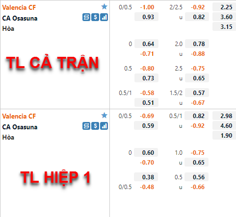 Sử dụng đội hình tấn công ở chuyến làm khách đến Mestalla tới đây, Osasuna cho thấy sự tự tin rất lớn trước đội chủ nhà Valencia. Tuy vậy trên sàn giao dịch châu Á, việc nhà cái vẫn xếp kèo chấp 1/4 cùng điểm ăn đang được kéo về cân bằng cho đội chủ nhà đã cho thấy sẽ khó để tin vào bất ngờ từ đội khách.