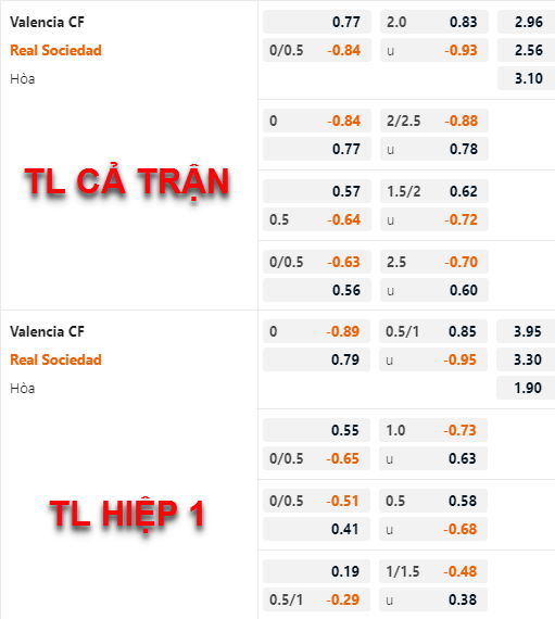 * Chốt kèo trận Valencia vs Sociedad (03h00 ngày 26/2)