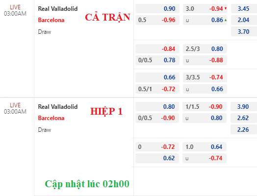 Tuy nhiên, trên sàn châu Á thì Barcelona không có sức bật. Họ vẫn chấp hòa và thậm chí điểm ăn còn tiến đến mức bỏ. Trong khi tài xỉu lên 3 hòa thì biến động handicap như vậy là chưa khả quan với các vị khách.