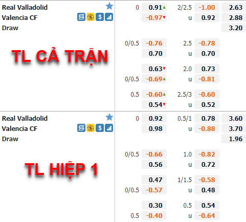 Tỷ lệ của Valencia có xu hướng tăng khi càng tơi gần thời điểm bóng lăn. Hiện tài tỷ lệ chính của trận đấu đã là mức 0:0 và điểm ăn ít bên phía đội chủ nhà thay cho mức chấp 1/4 của Valladolid ở lần chúng tôi cập nhật trước đây. Tỷ lệ tài xỉu ít biến động hơn khi mốc chính vẫn đang được duy trì ở mức 2 1/4, điểm ăn của cửa tài được điều chỉnh tăng nhưng không quá nhiều.