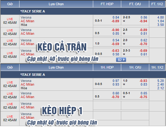 * Chốt kèo trận Verona vs AC Milan (01h45)