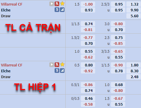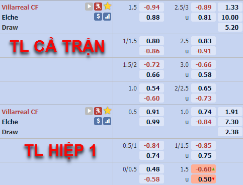 Tỷ lệ chính của tận đấu vẫn đang được nhà cái châu Á duy trì ở mức chấp 1 1/2 của đội chủ nhà Villarreal nhưng điểm ăn của cửa trên đã được điều chỉnh tăng đôi chút. Ở bên phía tỷ lệ tài xỉu của trận đấu mốc chính của trận đấu 2 3/4 ở lần chúng tôi cập nhật trước đây đã được nhà cái kèo xuống mốc 2 1/2 hiện tại.