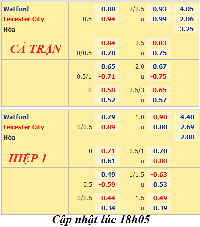 CHỐT KÈO trực tiếp trận Watford vs Leicester (18h30)