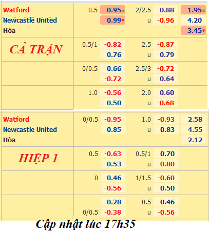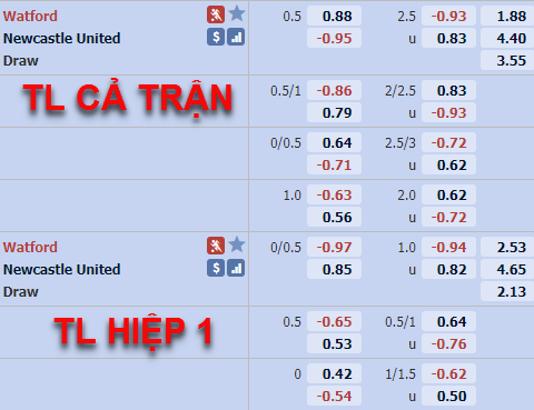 Cần điểm để trụ hạng là sự khác biệt mà Watford đang có về động lực so với Newcastle. Nhà cái cũng nghiêng về khả năng Chích chòe thi đấu thiếu nhiệt huyết khi niêm yết họ ở thế cửa dưới với mốc 1/2 dù có thứ hạng cao hơn khá nhiều.