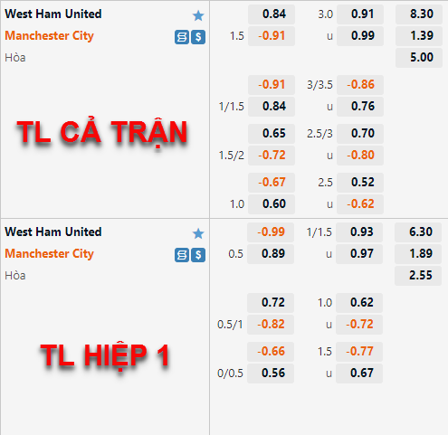 AEGoal chốt kèo bóng đá trực tiếp trận West Ham vs Man City diễn ra lúc 22h30 ngày 07/08 trong khuôn khổ giải Ngoại hạng Anh sau khi dựa trên tính toán, chuyển động về kèo châu Á và đội hình ra sân của 2 đội.