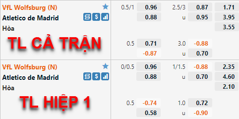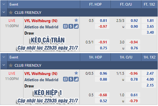 * Chốt kèo trận Wolfsburg vs Atletico Madrid (23h00 ngày 31/7)