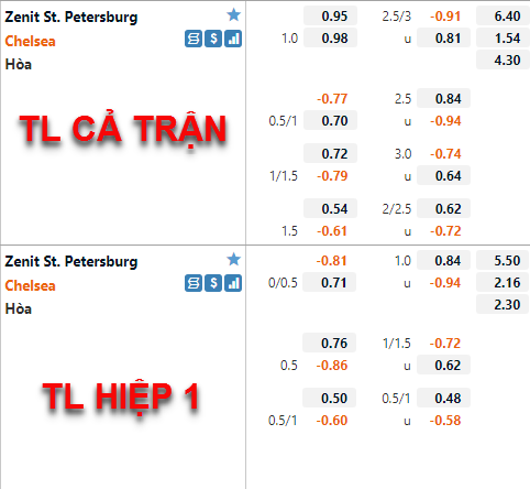 Đã có khá nhiều thay đổi trong đội hình ra sân của Chelsea ở trận này, trái lại lực lượng của Zenit đã không có quá nhiều dịch chuyển. Tuy nhiên, trên sàn giao dịch châu Á, việc nhà cái xếp Chelsea ở kèo - 1 cùng thang điểm ăn cân bằng đã cho thấy vị thế vẫn được thể hiện của đại diện nước Anh.
