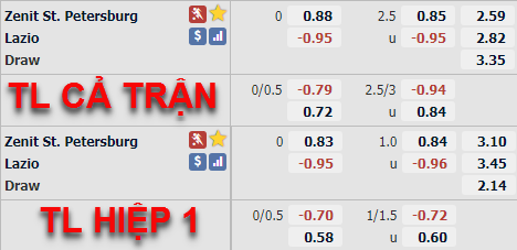 * Chốt kèo trận Zenit vs Lazio (00h55 ngày 5/11)
