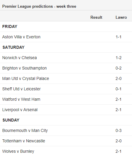 Cùng chuyên gia hàng đầu của BBC, Mark Lawrenson dự đoán kết quả các trận đấu thuộc vòng 3 giải Ngoại hạng Anh, Premier League.