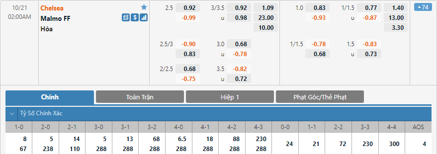 Ở bảng kèo tỷ số chính xác tỷ số 2-0 và 3-0 đang có điểm ăn thấp nhất với 5 lần. Tiếp theo 4-0 và 1-0 với điểm ăn lần lượt là 6.5 và 8 lần. Với dự đoán Chelsea sẽ không thắng quá đậm và tỷ số chấp tương đối sâu trên sàn giao dịch châu Á thì có lẹ lựa chọn tốt nhất trận này vẫn là tỷ số 2-0 hoặc 3-0.