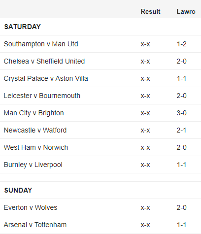 Dự đoán của Lawro: 1-2