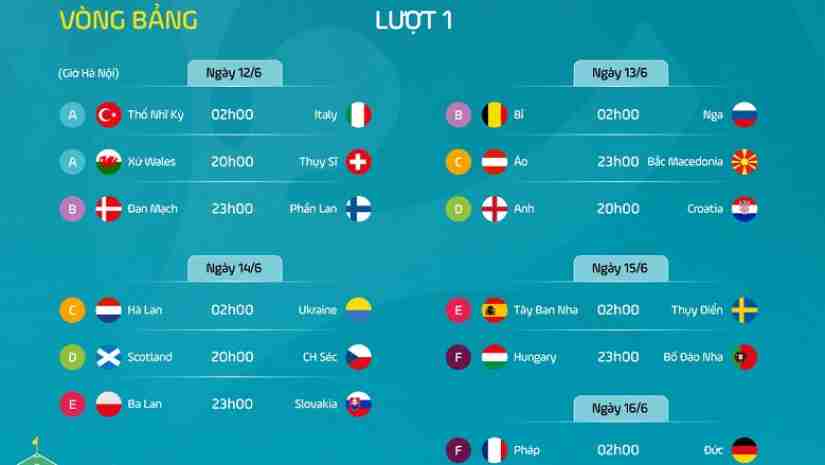 Dự đoán kết quả lượt trận đầu tiên vòng bảng Euro từ chuyên gia AEGoal