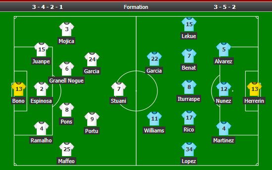 Về đội hình ra sân, cả hai đội cùng sử dụng sơ đồ 4-4-2 như nhau và đều có được những cái tên chất lượng nhất ở đội hình xuất phát. Dẫu thời gian gần đây Valencia đã bị xuống phong độ nhiều, nhưng họ vẫn là đội bóng nằm trong top 3 và đứng ngay sau Atletico Madrid. Nhìn chung, đội chủ nhà sẽ không dễ dàng có được chiến thắng ở trận này.