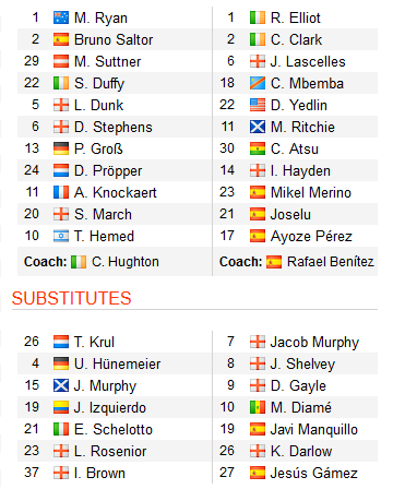Đây là điều dễ hiểu khi nhà đầu tư vẫn tin tưởng nhiều hơn vào đội quân của HLV Benitez nhờ kinh nghiệm và đội hình chất lượng hơn khá nhiều đội chủ nhà. Bởi đội hình của Brighton phần lớn là các cầu thủ mới lần được được tham dự giải Ngoại hạng Anh và thực tế họ chưa có nhiều dấu ấn kể từ đầu mùa. Nhất là các trận gặp các đối thủ được coi là vừa sức.