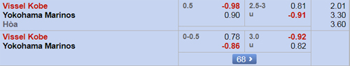 Vissel Kobe không biết mùi chiến thắng trong 5 cuộc tiếp đón Yokohama FM gần nhất nhưng ở trận đấu này, họ vẫn được nhà cái đánh giá cao với tỷ lệ 0:1/2. Cơ hội thắng của Iniesta và các đồng đội là không nhỏ bởi đối thủ của họ, Yokohama FM đang thể hiện phong độ khá tệ khi để thua 5/6 vòng đấu gần nhất.