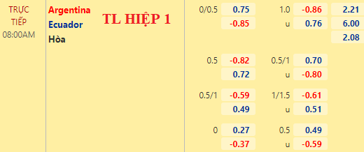 Phân tích kèo hiệp 1 trận Argentina vs Ecuador