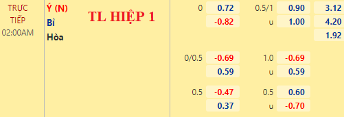 Chính vì vậy mà dẫu có chút ưu thế hơn về mặt nhân sự, nhưng hiệp 1 trận này Italia cũng chỉ chấp về giá. Họ cũng không hẳn là đội bóng có thói quen khởi đầu tốt tại các trận knock-out nên mức handicap HT như vậy chưa hẳn là quá khả quan với Azzurri.