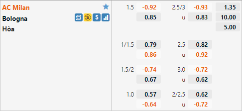 Phân tích kèo trận AC Milan vs Bologna (01h45)