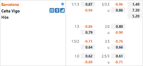 Phân tích kèo trận Barcelona vs Celta Vigo (02h30)