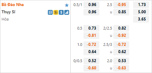 Phân tích kèo trận Bồ Đào Nha vs Thụy Sĩ (01h45)