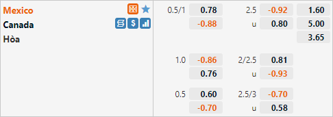 Điều này hoàn toàn hợp lý khi nhìn vào thành tích đối đầu của hai đội, Mexico hoàn toàn chiếm ưu thế khi thắng 5 và hoà 1 trong 6 cuộc đối đầu gần nhất, và họ cũng thắng kèo có 4 trận đấu gần nhất với Canada. Ở kèo tài xỉu, mốc 2 1/2 với điểm ăn thấp bên phía của xỉu đang là mốc chính của trận đấu, mốc tỷ lệ này không có gì bất thường khi đây là trận đấu bán kết và rất khó để trận đấu có được một thế trận cởi mở.