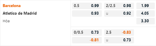 Phân tích tỷ lệ trận Barcelona vs Atletico Madrid (21h15 ngày 23/4)