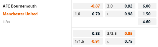 Phân tích tỷ lệ trận Bournemouth vs Man Utd (21h00)