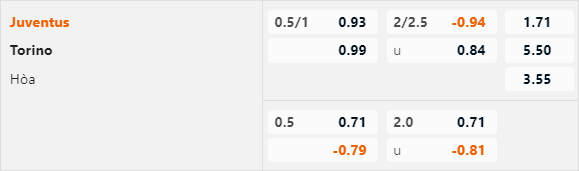 Giai đoạn hiện tại Torino cũng đang thi đấu không tốt khi thua kèo 4/5 trận đầu gần nhất. Mặc dù các cầu thủ sẽ thi đấu với quyết tâm cao khi đối đầu với Juventus nhưng với thực lực hiện tại đội khách không có nhiều cơ hội tạo nên bất ngờ nếu các cầu thủ Juventus thi đấu đúng sức.