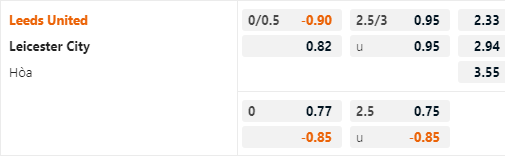 Với lợi thế sân nhà Leeds Utd được nhà cái đánh giá cao hơn đối thủ với tỷ lệ chấp 1/4 trên sàn giao dịch châu Á. Có thể thấy Leeds Utd đang được nhà cái đánh giá cao khi ở cuộc đối đầu tương tự của mùa giải trước trận đấu chỉ có mức tỷ lệ 0:0.