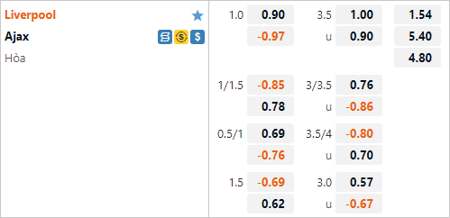 Phân tích tỷ lệ trận Liverpool vs Ajax (02h00)