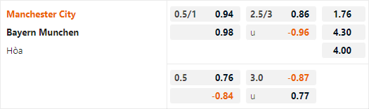 Nhưng đây vẫn là một trận đấu không dễ dàng đoán, bởi ở đấu trường cao nhất châu lục này Bayern Munich thực tế có nhiều kinh nghiệm thi đấu với Man City. Mặc dù lực lượng có phần thua kém đối thủ nhưng Bayern Munich vẫn có đủ bản lĩnh để tạo nên khó khăn cho đối thủ. Lựa chọn ở kèo Handicap trận này không phải là việc dễ dàng nhưng nếu phải chọn thì có lẽ lựa chọn cửa trên vẫn là lựa chọn đáng chú ý với tỷ lệ chấp 3/4 nhà cái đưa ra.