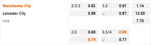 Phía bên kia Leicester duy trì phong độ hoàn toàn trái ngược, đội khách đã thua 8 hoà 1 ở 9 trận đấu gần nhất mặc dù chỉ đối đầu với những đội bóng trung bình tại giải Ngoại hạng. Rõ ràng với phong độ này thì rất khó để Leicester có thể tạo nên bất ngờ khi đối đầu với Man City khát khao chiến thắng và có phong độ xuất sắc. Lựa chọn cửa trên sẽ là lựa chọn hợp lý nhất ở kèo Handicap trận này.